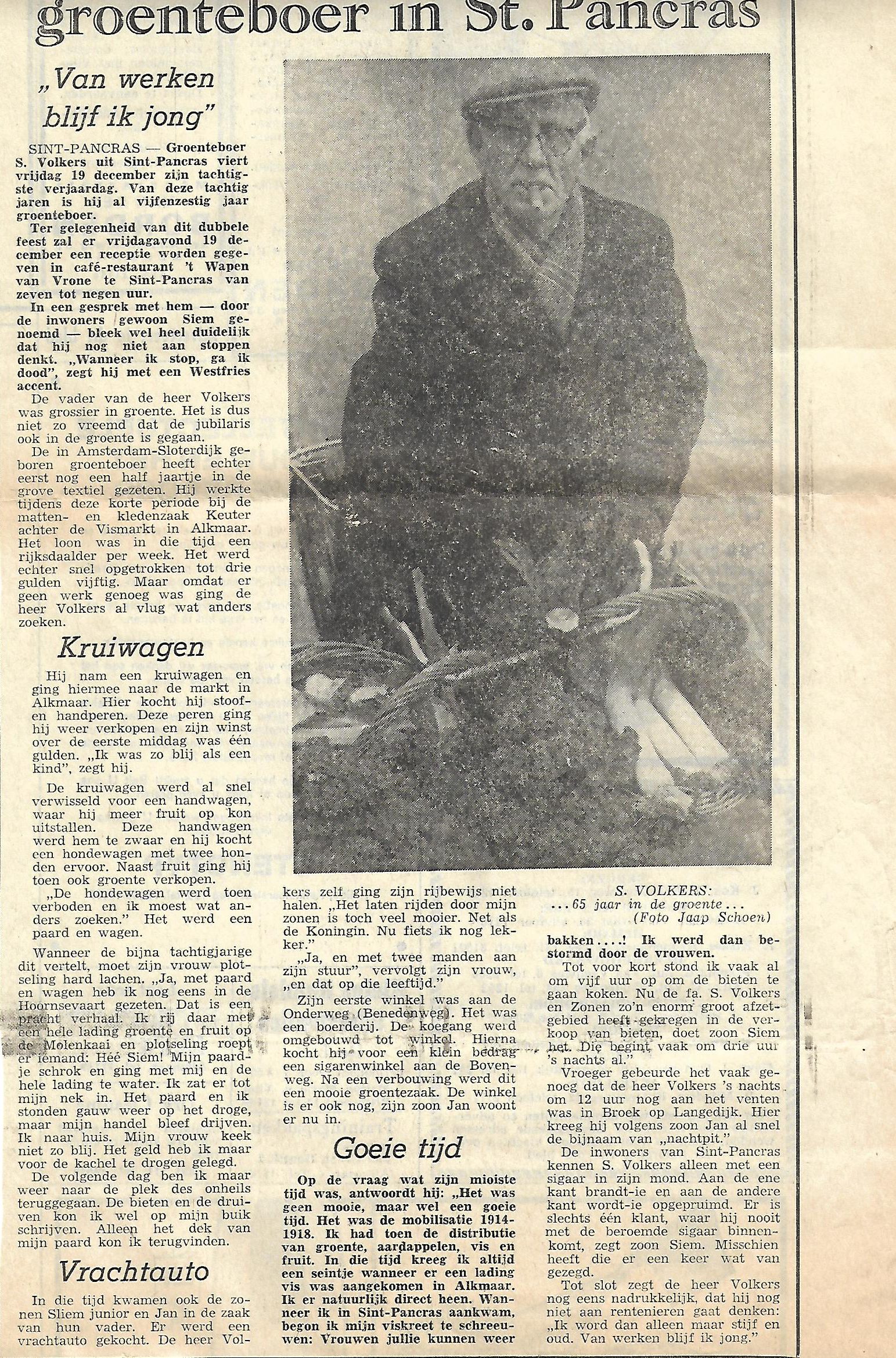 De groente en fruit winkel van de familie Volkers in Sint Pancras bestaat al van generatie op generatie. Vroeger werd er ook langs de deuren gevent met paard en wagen en later met een open vrachtwagen.